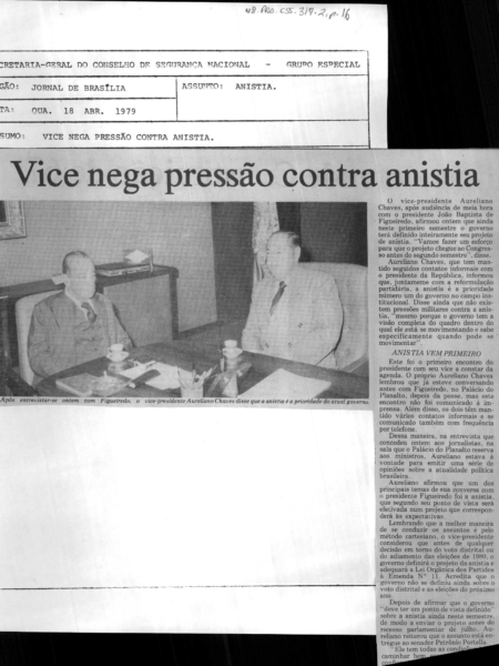 Pres. Figueiredo encaminha ao congresso o Projeto da Anistia, 27/06/1979