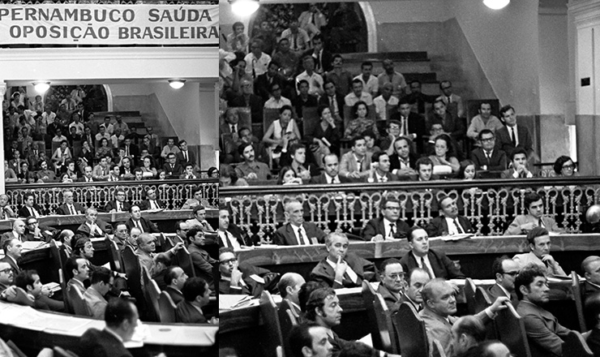 Reunião do MDB em que foi elaborada a Carta de Recife em defesa da anistia