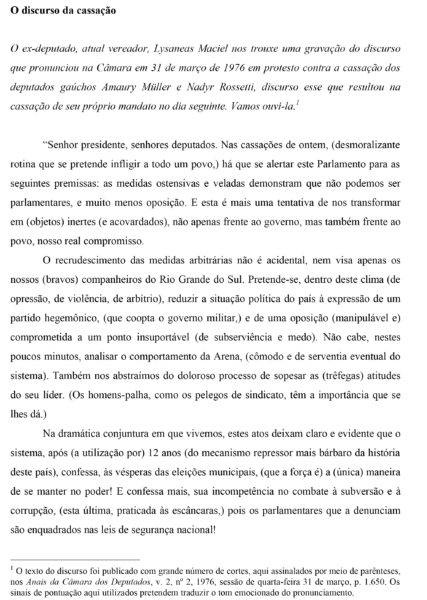 Brossard, Paulo. Chega de arbítrio. Porto Alegre: L&PM, 1978.