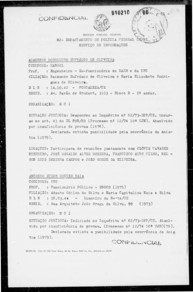RENATO AZEREDO - Congresso Nacional - Sessão Extraordinária - Votação Anistia 22/08/1979