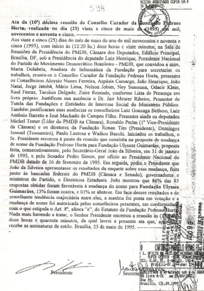 Em maio de 1995, a Fundação passa a levar o nome de Ulysses Guimarães, escolhida por maioria dos parlamentares, governadores e ministros do PMDB, e aprovada em reunião do Conselho Curador da Fundação Pedroso Horta.