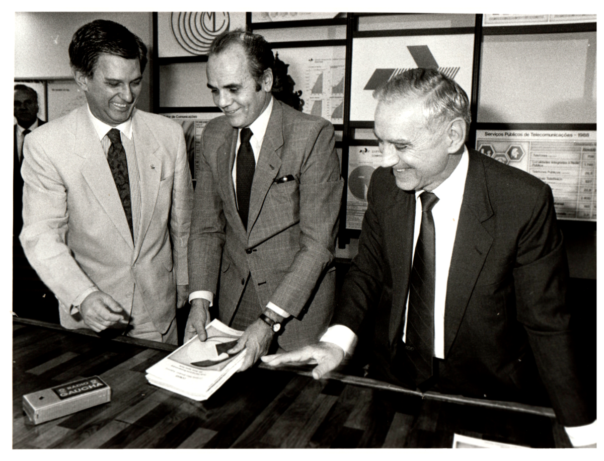 Synval Guazzelli e Ibsen Pinheiro na Assinatura do acordo ponte internacional Brasil-Argentina no dia 02/07/1990