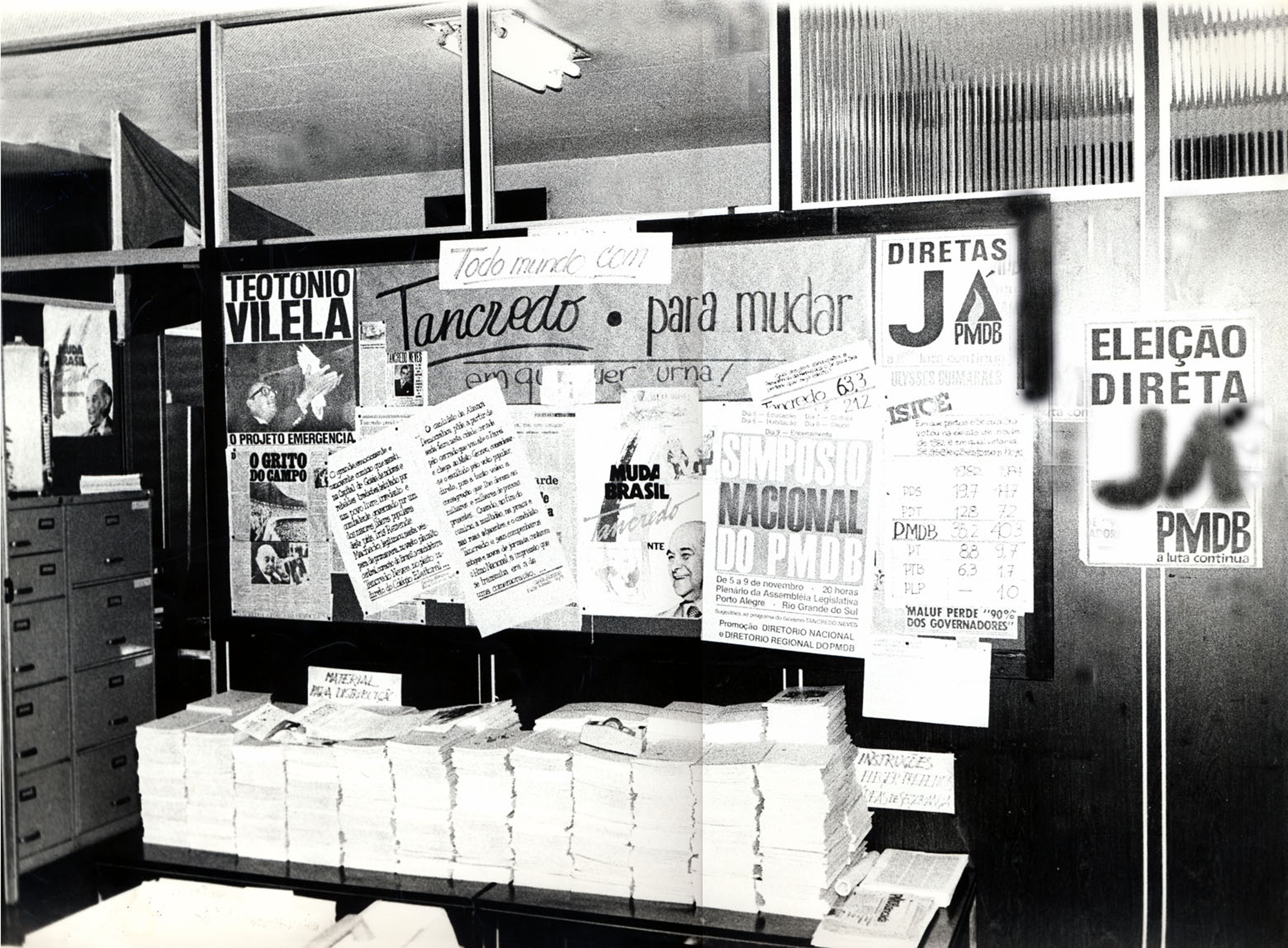 Material publicitário da campanha pelas Diretas e da campanha de Tancredo Neves
