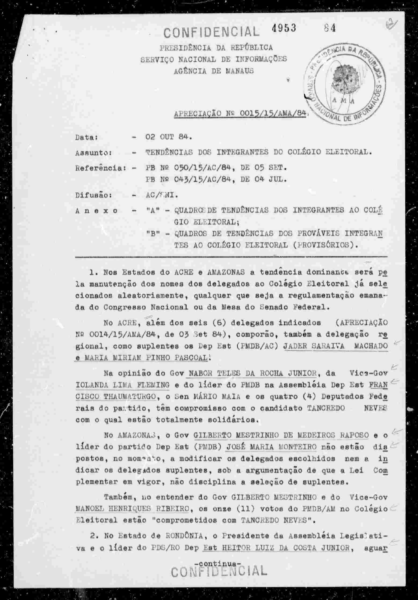 Foto de Nelson Aranha (Ed. Manchete) comemoração da eleição de Tancredo Neves em Belo Horizonte (15.1.85). Tancredo Neves - Um homem para o Brasil. Belo Horizonte - Fundação Presidente Tancredo Neves - Autêntica, 2010. Página 112.
