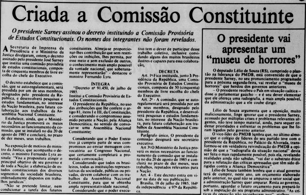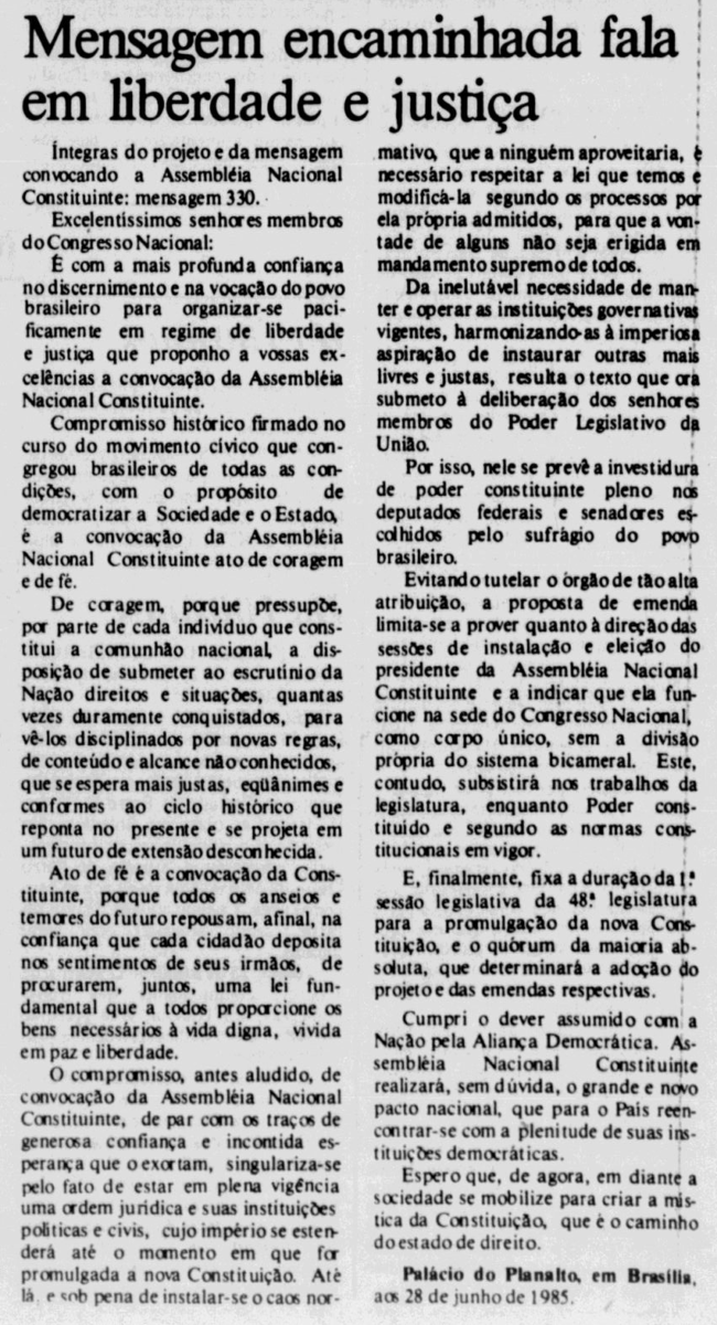 Rumo à liberdade: a convocação da Constituinte em 1985