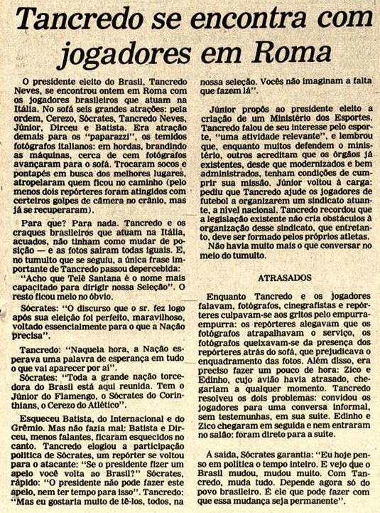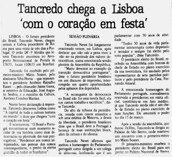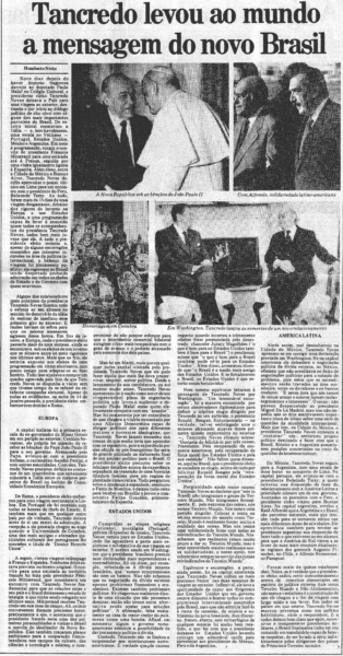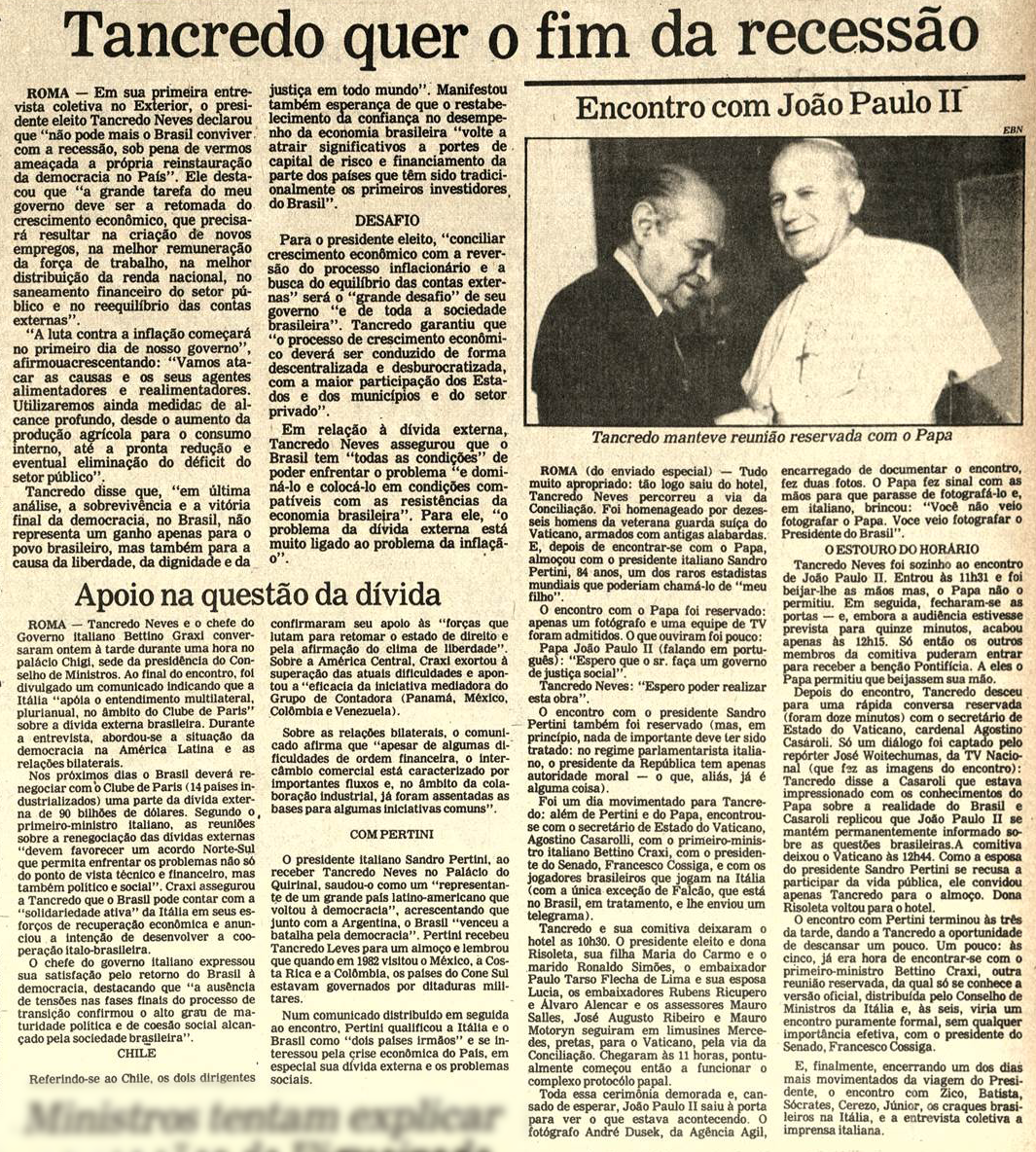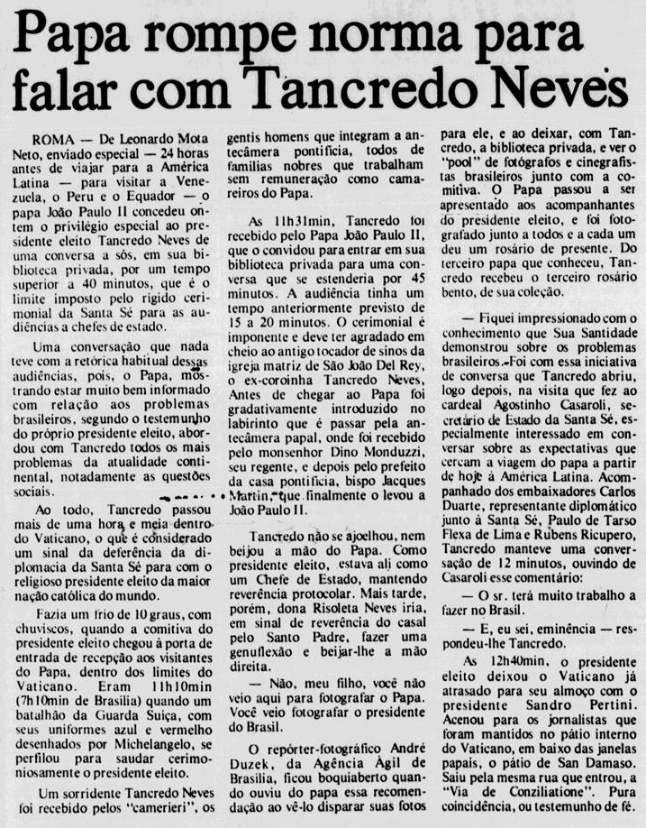 Papa rompe norma para falar com Tancredo Neves (Jornal do Commercio RJ)
