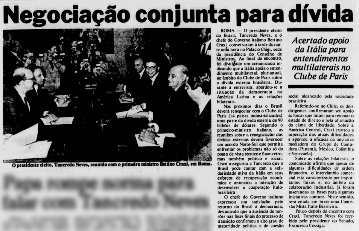 Encontro com o 1o Ministro Bettino Craxi (Jornal do Commercio RJ)