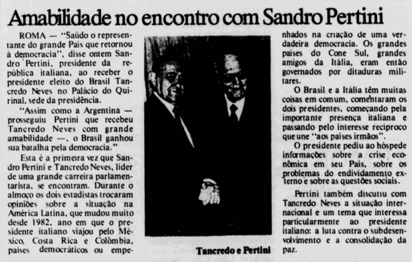 Encontro com o Presidente Italiano Sandro Pertini (Jornal do Commercio RJ)