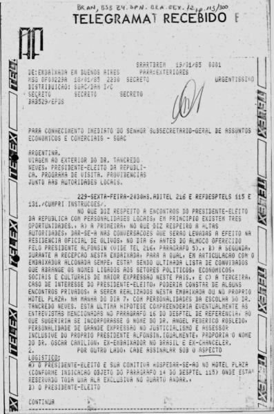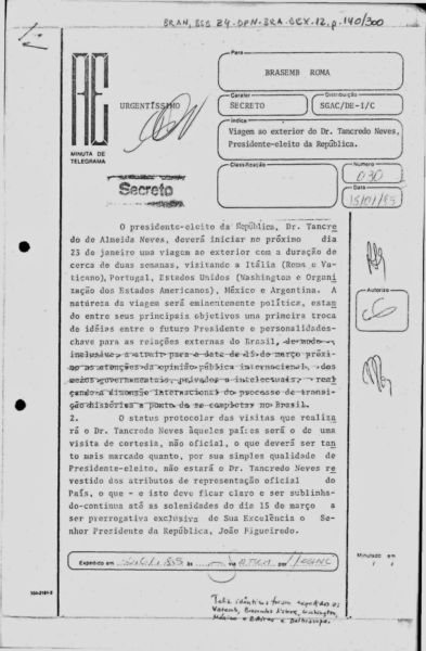 RICUPERO, Rubens. Diário de Bordo: a viagem presidencial de Tancredo. (São Paulo, Imprensa Oficial, 2010).