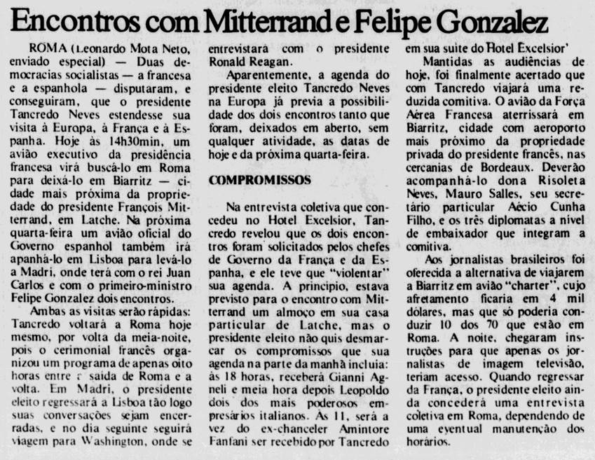 Encontros com Mitterrand e Felipe Gonzalez (Jornal do Commercio RJ)