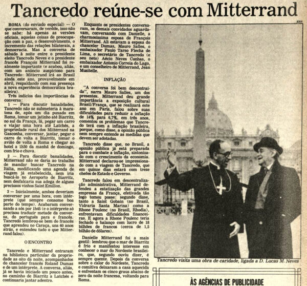 Tancredo se reúne com o Presidente Francês, François Mitterrand (Jornal Cidade de Santos)