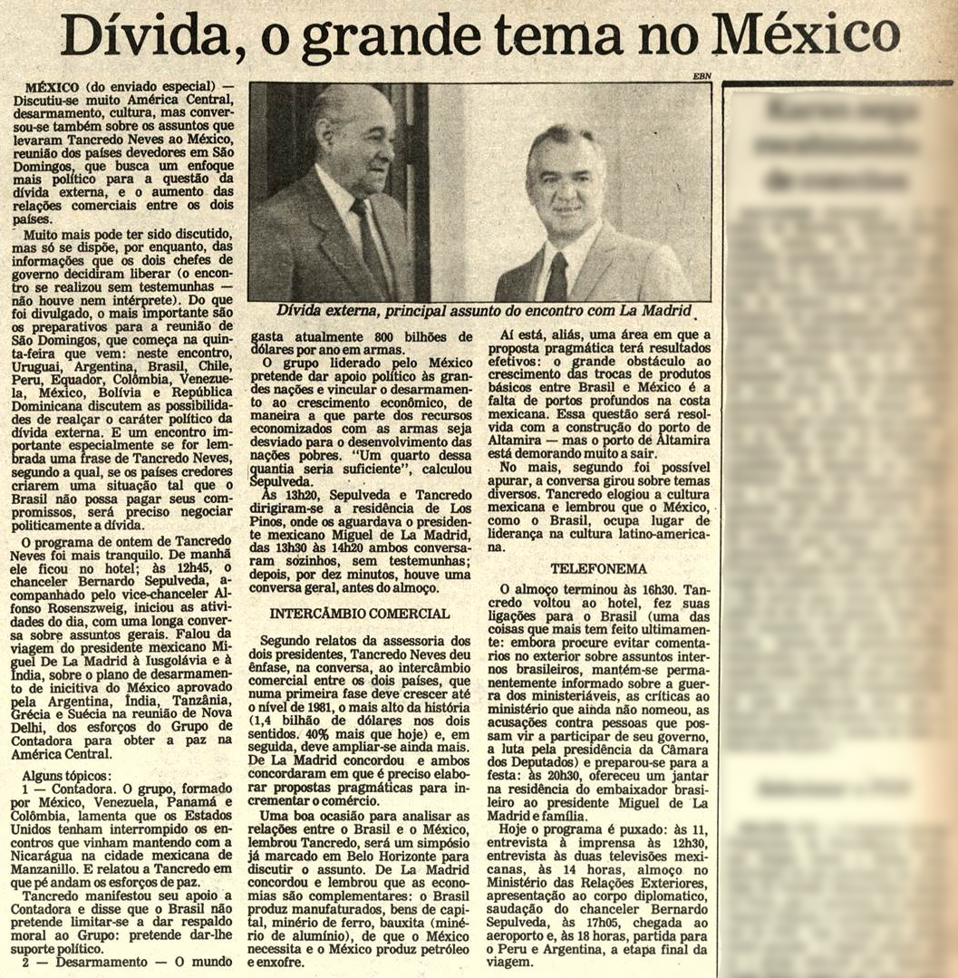 Encontro com o Presidente do México, Miguel de La Madrid (Jornal Cidade de Santos)