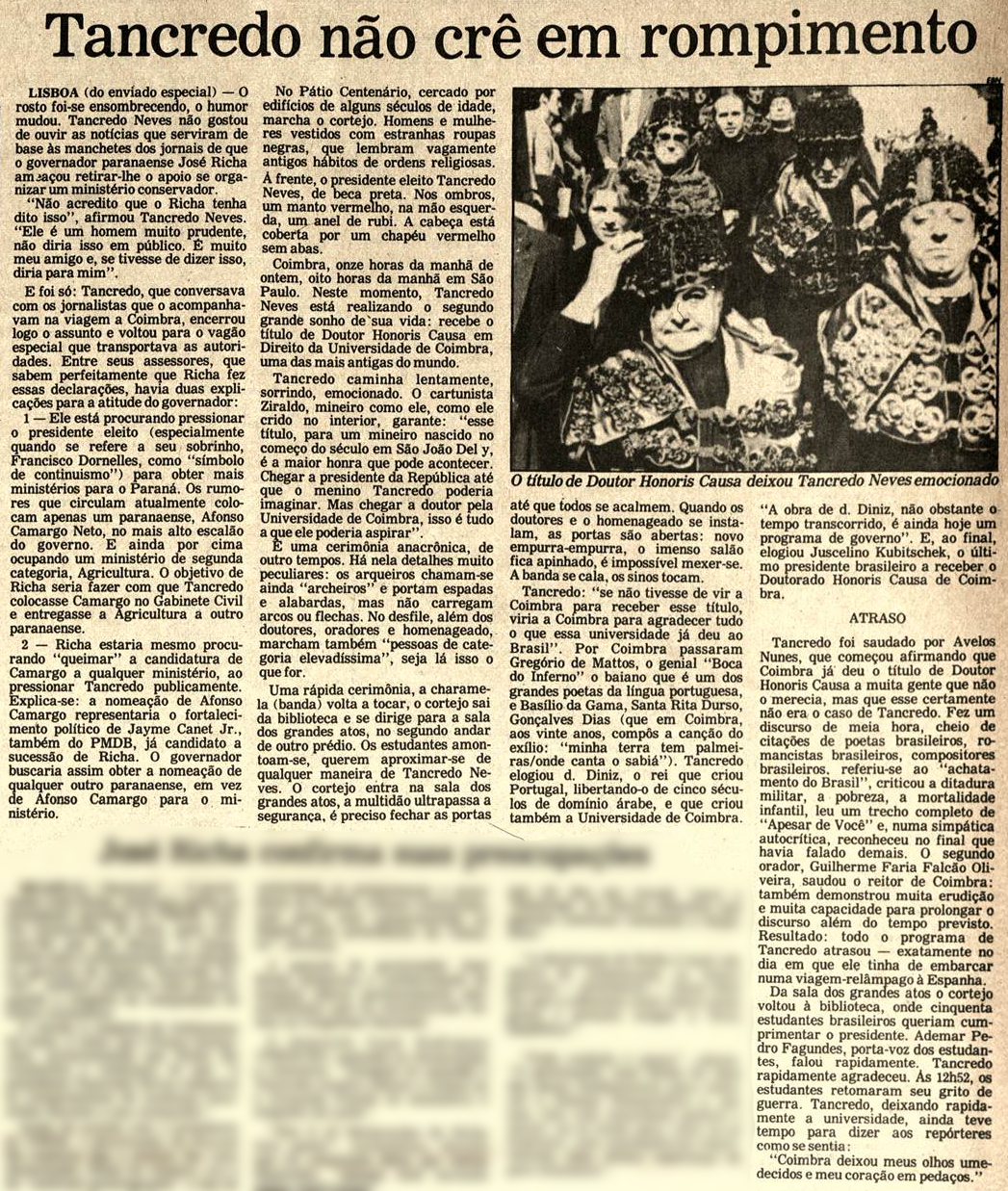 O Titulo de Doutor Honoris Causa deixou Tancredo Neves emocionado (Jornal Cidade de Santos)